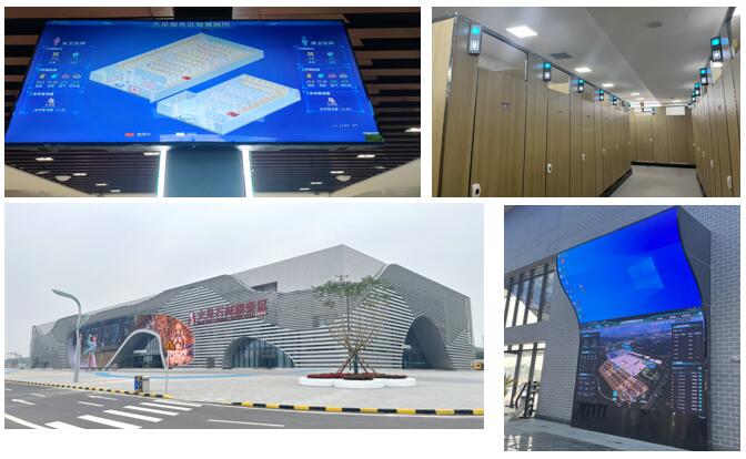 在本次項(xiàng)目中,我公司提供智慧衛(wèi)生間導(dǎo)視系統(tǒng)、曲面小間距全彩屏、分流導(dǎo)視屏、門(mén)架情報(bào)板、多功能一體機(jī)等設(shè)備。