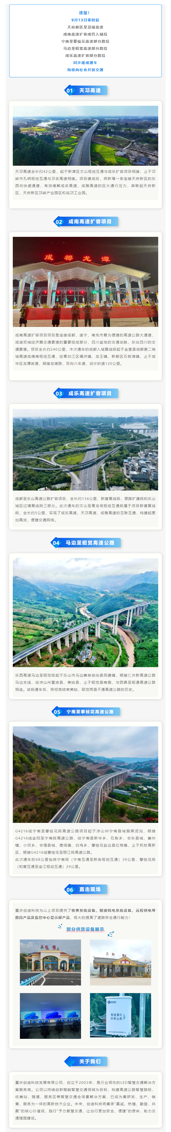 重慶創(chuàng)迪助力丨四川多條高速(路段)建成通車(chē)!